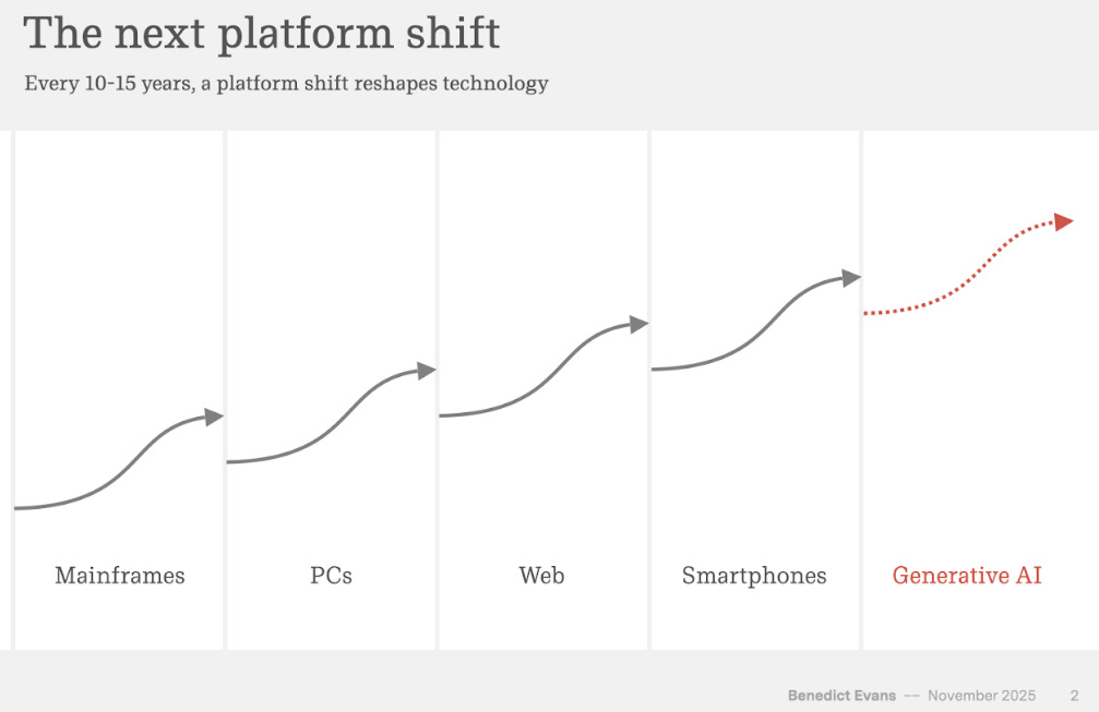 AI is the next big platform shift. You still remember the first PCs, and it was pure magic. A machine that can do calculations in a fraction of the time it took a human. The web connected all of us to each other, and with the rise of the smartphone, we had all the world’s knowledge in our pockets. GenAI is now bringing smart assistants for “free” and there will be so many use cases that we cannot imagine yet.