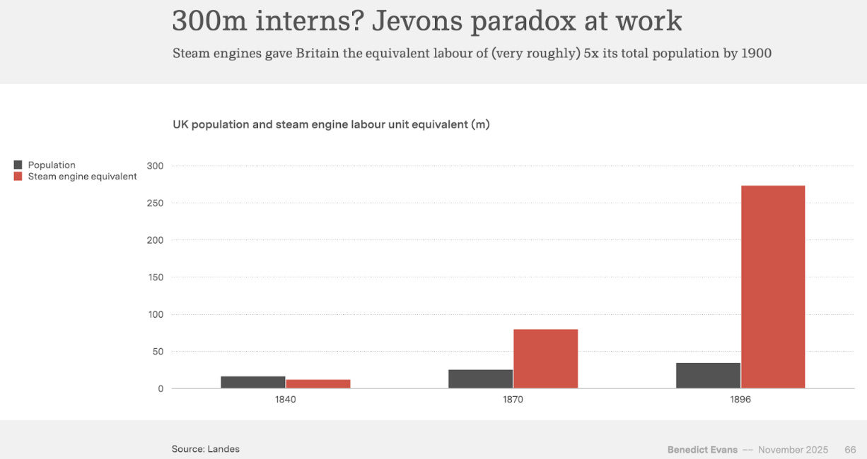 With the rise of the steam engine, there were many new job profiles and things that could be done. Given the AI analogy, this did not lead to massive unemployment in the UK as a result of the steam engine.