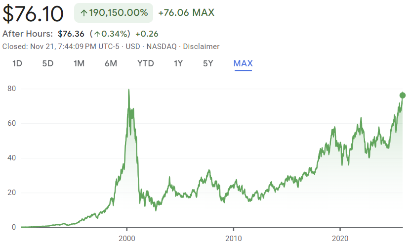 It took Cisco 25 years to get back to its height from 2000. Ouch!