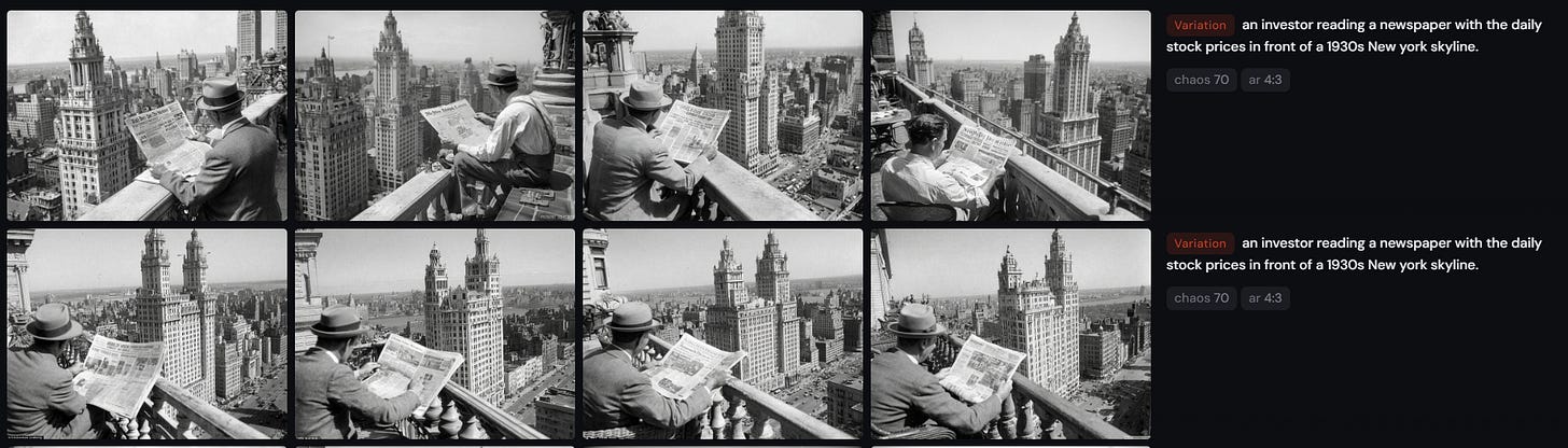 I believe that certain sectors will be directly hit by the rise of AI. I create the main picture of my articles with Midjourney. For example, last week’s post prompt looked like this: