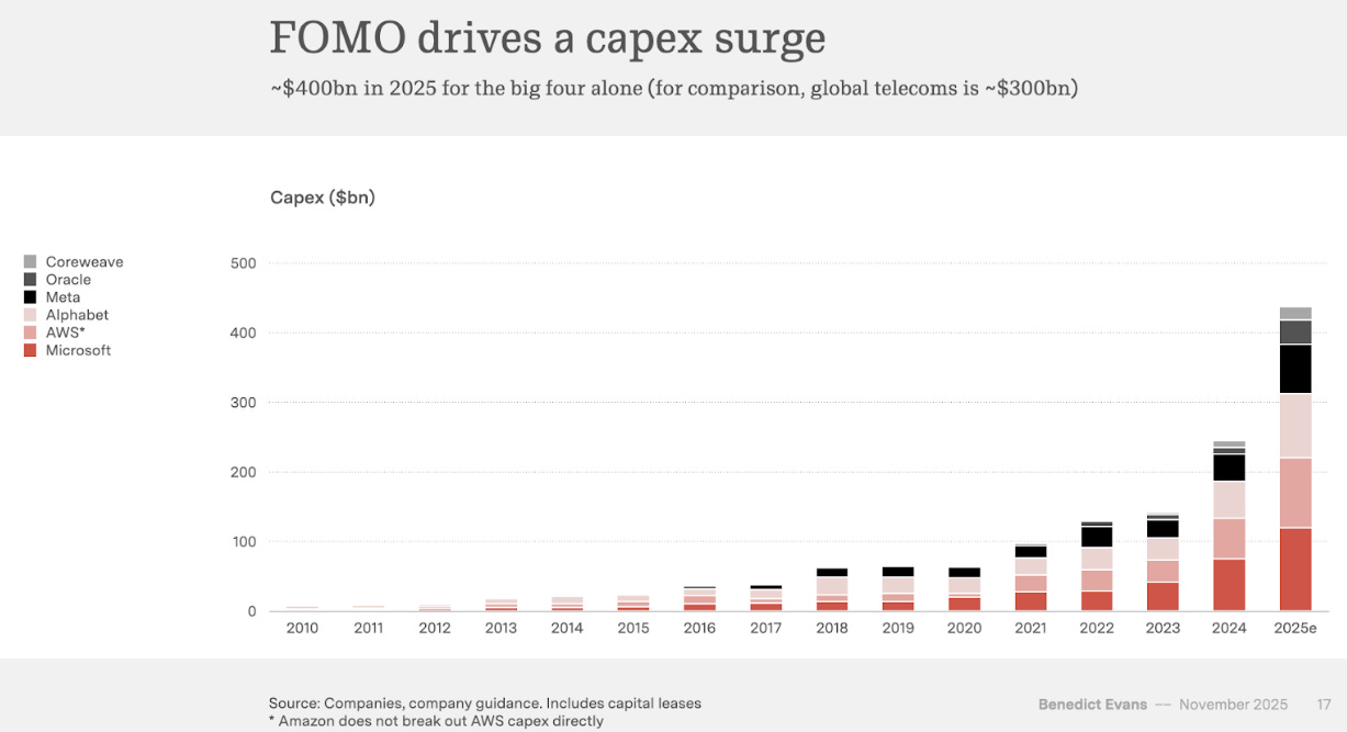 I’ve mentioned it before, and this graph visualises in a great way the ridiculous increase in CapEx by the Big 4 players.