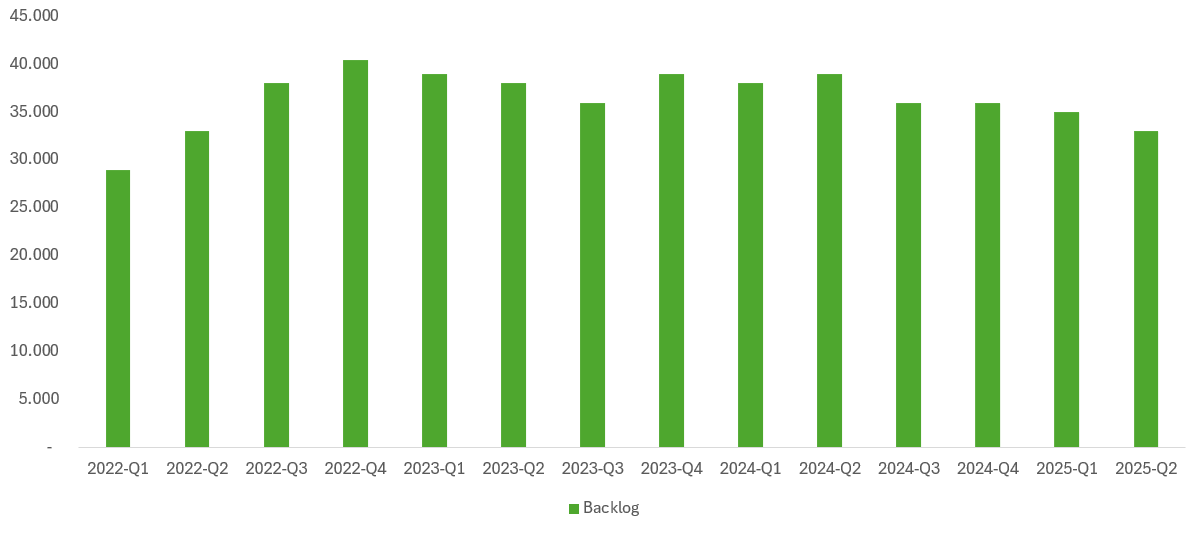 As a result, the order backlog is now at its lowest level in the last four years, driven by economic uncertainty and tariff insanity. There was a €1.4 billion adjustment made in the backlog, which basically means that a customer (in this case from China) cancelled at least a portion of one order. This affected the deep DUV business line.