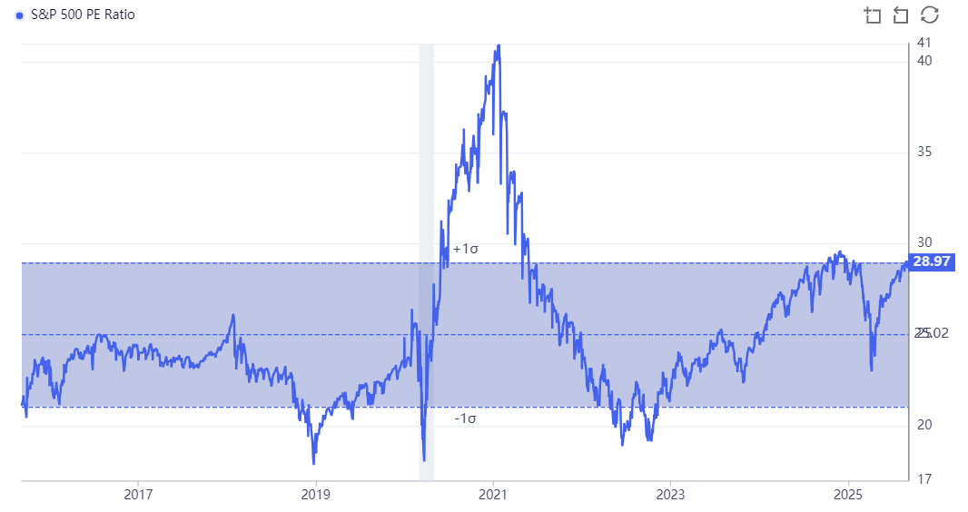 The S&P 500 is still trading at the higher end of its historical valuation. When looking at the chart below, ignore the COVID-19 peak.