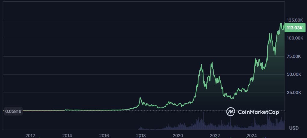 Nobody knows where the price of Bitcoin will be in 10 years or even tomorrow. Bitcoin itself has no cash flows that allow you to predict what it could be worth based on the fundamentals. I know all the reasons given by pro-crypto people, and I do believe that Bitcoin is here to stay. At what price, I don’t know. Gold itself has also close to no utility and keeps going up.