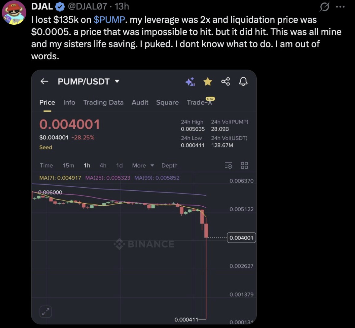 Fartcoin is, as of today, still at #128 of the largest crypto assets, and you can bet that a lot of people gambled with leverage on this brainfart. Even a mild 2x leverage position would have wiped you out. Most people chose a lot more leverage and were out within minutes. Twitter and Reddit are full of stories like these: