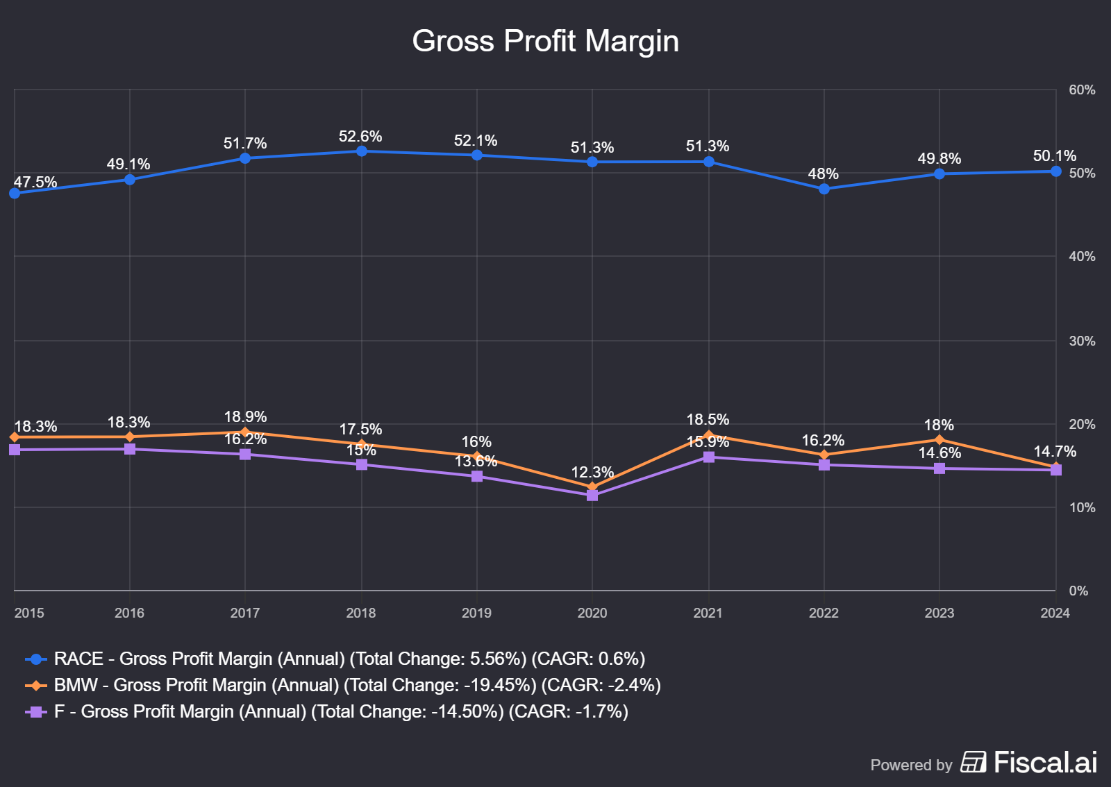That’s why Ferrari has attracted a premium valuation compared to traditional car makers. This is fully justified. Just compare the gross margins and number of cars produced, and you will see that Ferrari is a completely different beast. Ferrari’s gross profit ratio (that is, the delta of revenue and cost of production divided by the revenue) is in a league of its own: