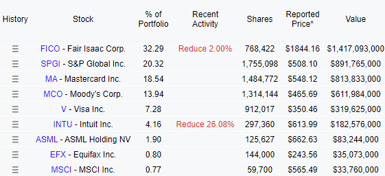 Given the insane run of Fair Isaac, I fully understand his rationale behind trimming the position a bit.
