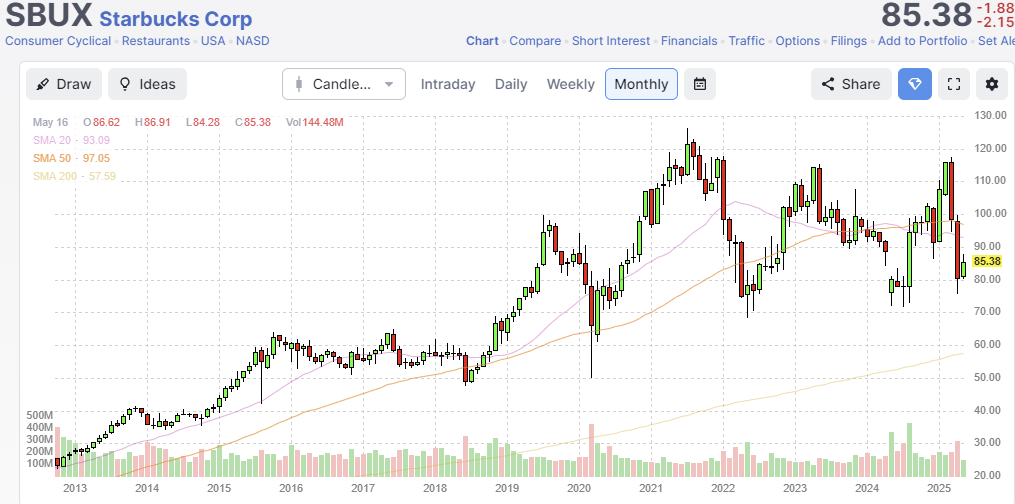 Starbucks has been discussed broadly on X and Substack. I understand why people find it cheap, given the strength of the brand. I would not invest in Starbucks, since I don’t see much room for further stores (the US is already full) and the continuous price increases are reaching sky-high levels.