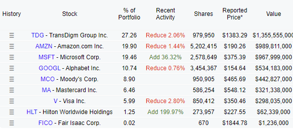 Valley Forge is as concentrated as they come and the fund I am most looking forward to every 13F season. Fund manager Dev Kantesaria had a quiet Q1 and only reduced his Fair Isaac and Intuit positions.