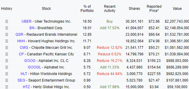 General Ackman has been very busy in Q1 and made his newest position Uber directly his largest portfolio holding. On the opposite was Nike, a position BIll sold completely. Nike is facing a tough time and any additional tariffs certainly do not help. He sold almost half of his Hilton position and increased his second-largest position, Brookfield.