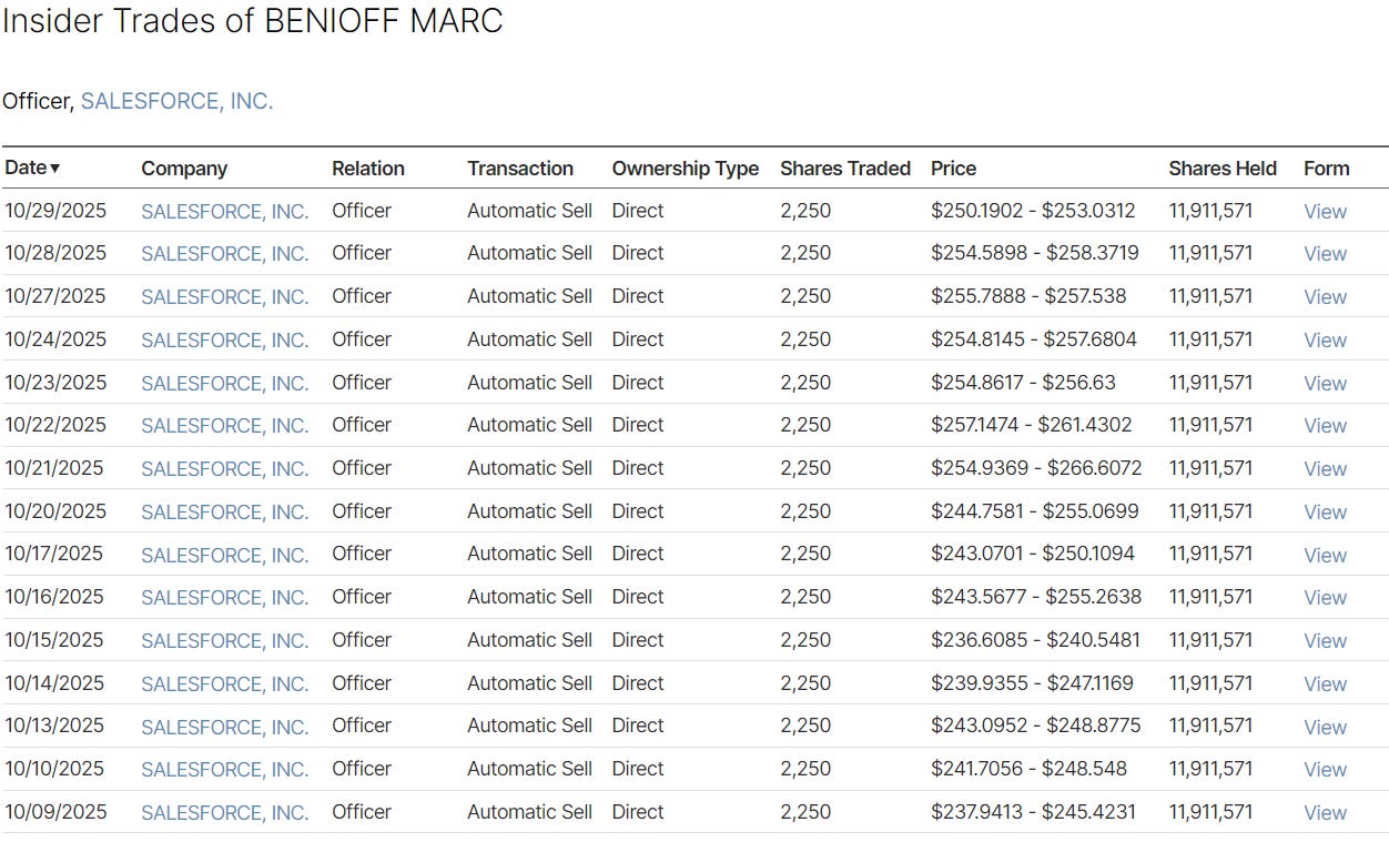 He holds roughly 12 million shares of Salesforce (slightly more than me), and he sells the shares that he gets awarded through option exercises every other day. This is not a red flag per se, but it would be nice if he would keep more money invested in Salesforce. The man has an expensive lifestyle with a private Gulfstream G650 jet and a fantastic villa in Hawaii, where he also keeps buying land in Hawaii.